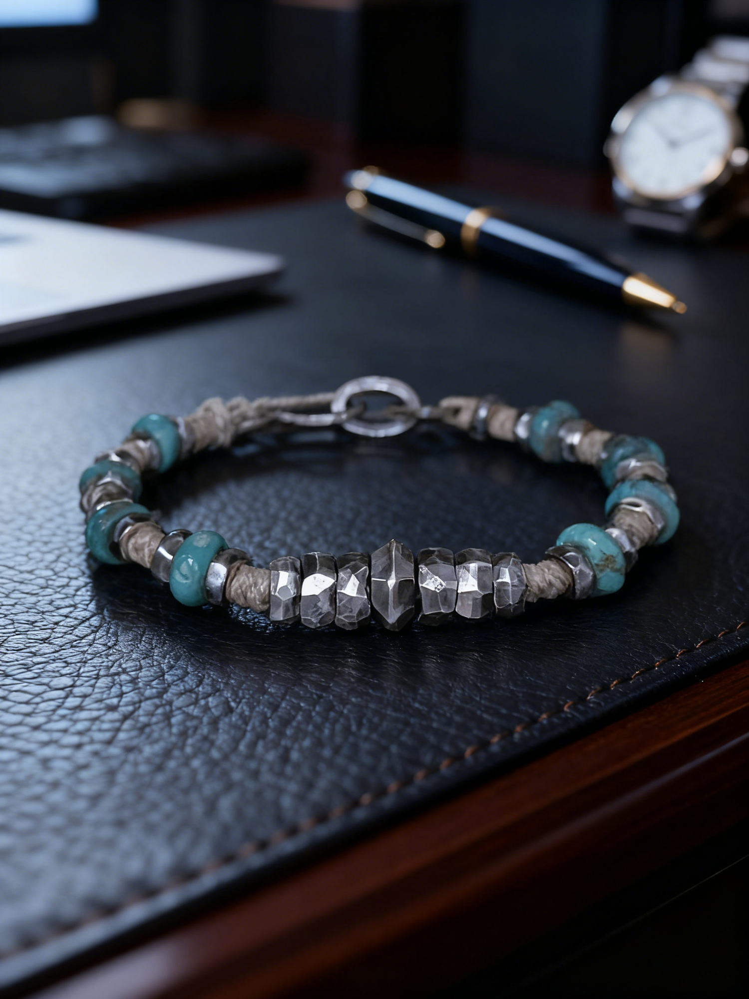 With premium turquoise, edgy metal accents, it’s your daily charm for peace, calm, and head-turning style.Turquoise eases anxiety, harmonizes relationships, purifies energy, and floods you with auspicious vibes & good fortune.Ideal for any scene – be it corporate or casual. Upgrade your look, upgrade your energy.