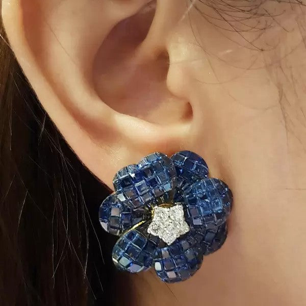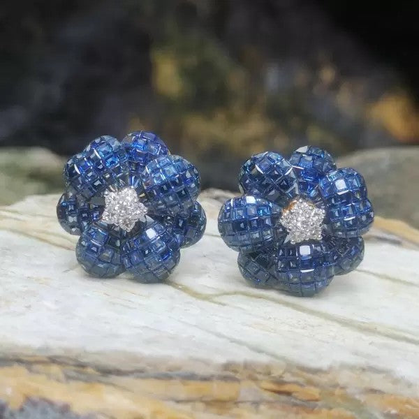 16ctw Asscher Cut Sapphire Flower Stud Earrings