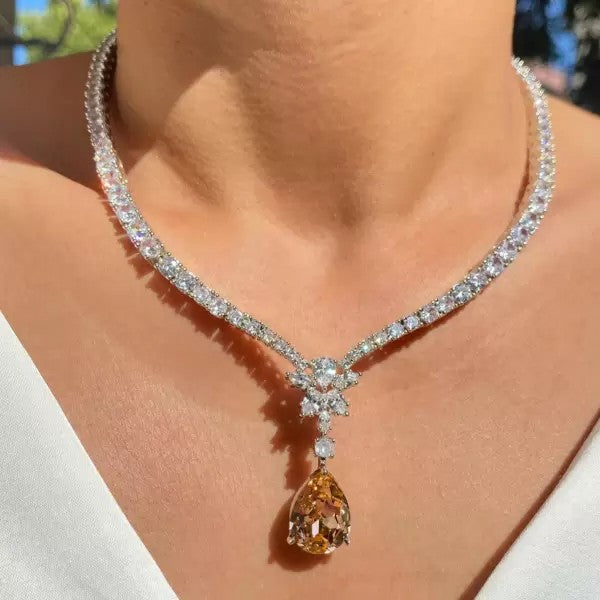 26ctw Pear Cut Champagne Sapphire Pendant Necklace