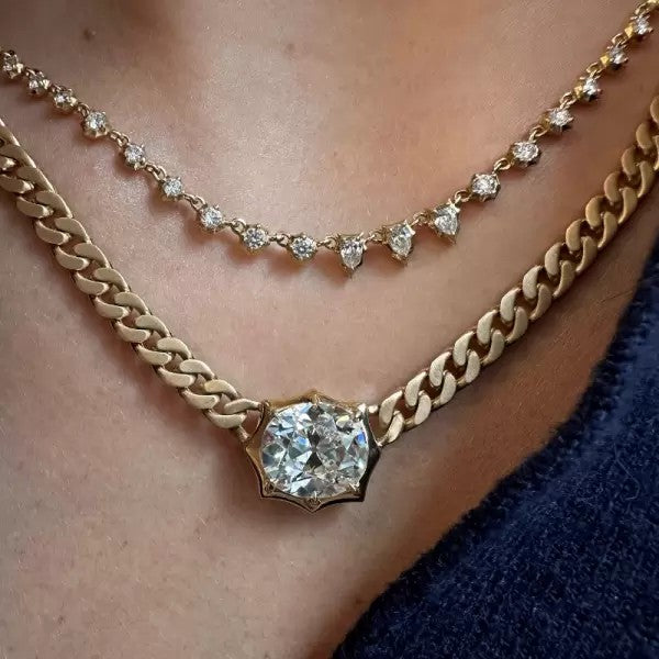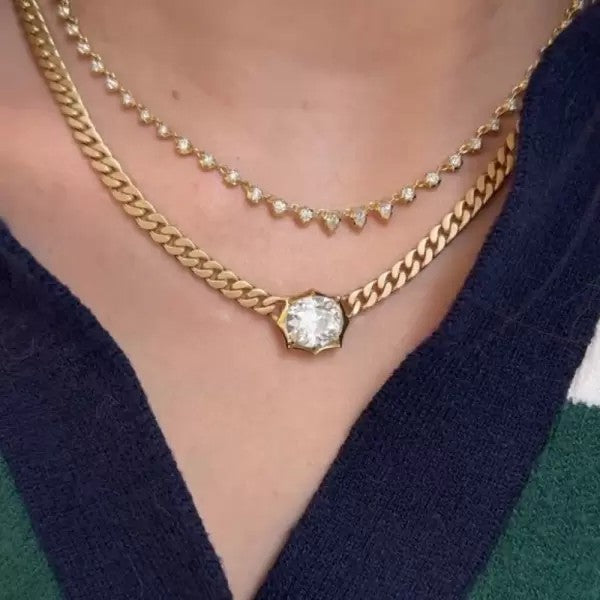 5 Carat Round Cut White Gemstone Vintage Necklace