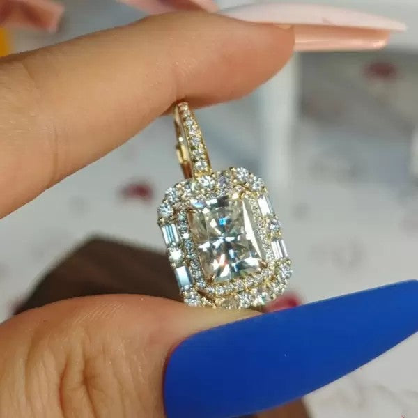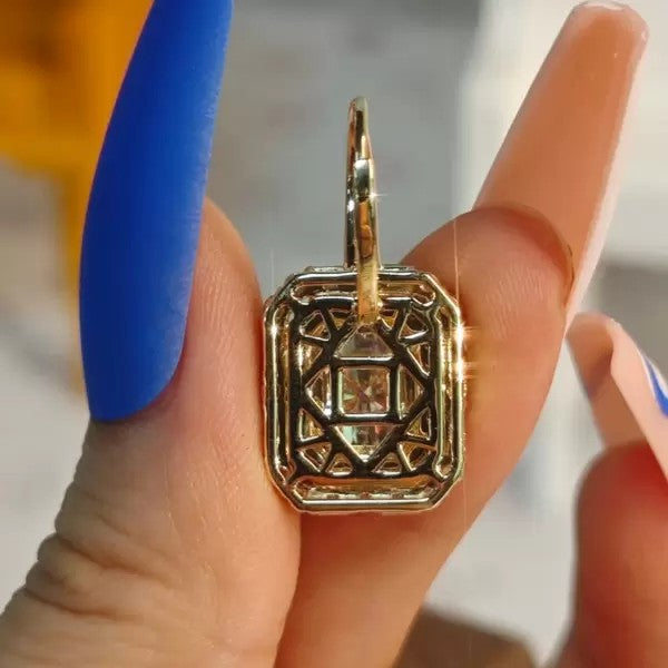 6ctw Radiant Cut White Sapphire Halo Drop Earrings