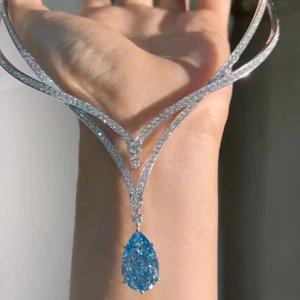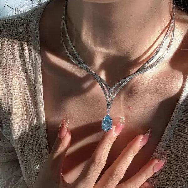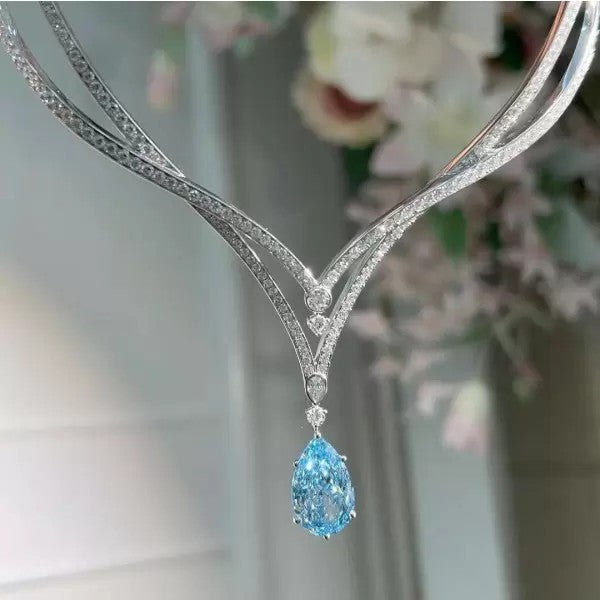 9ct Pear Cut Aquamarine Pendant Drop Necklace