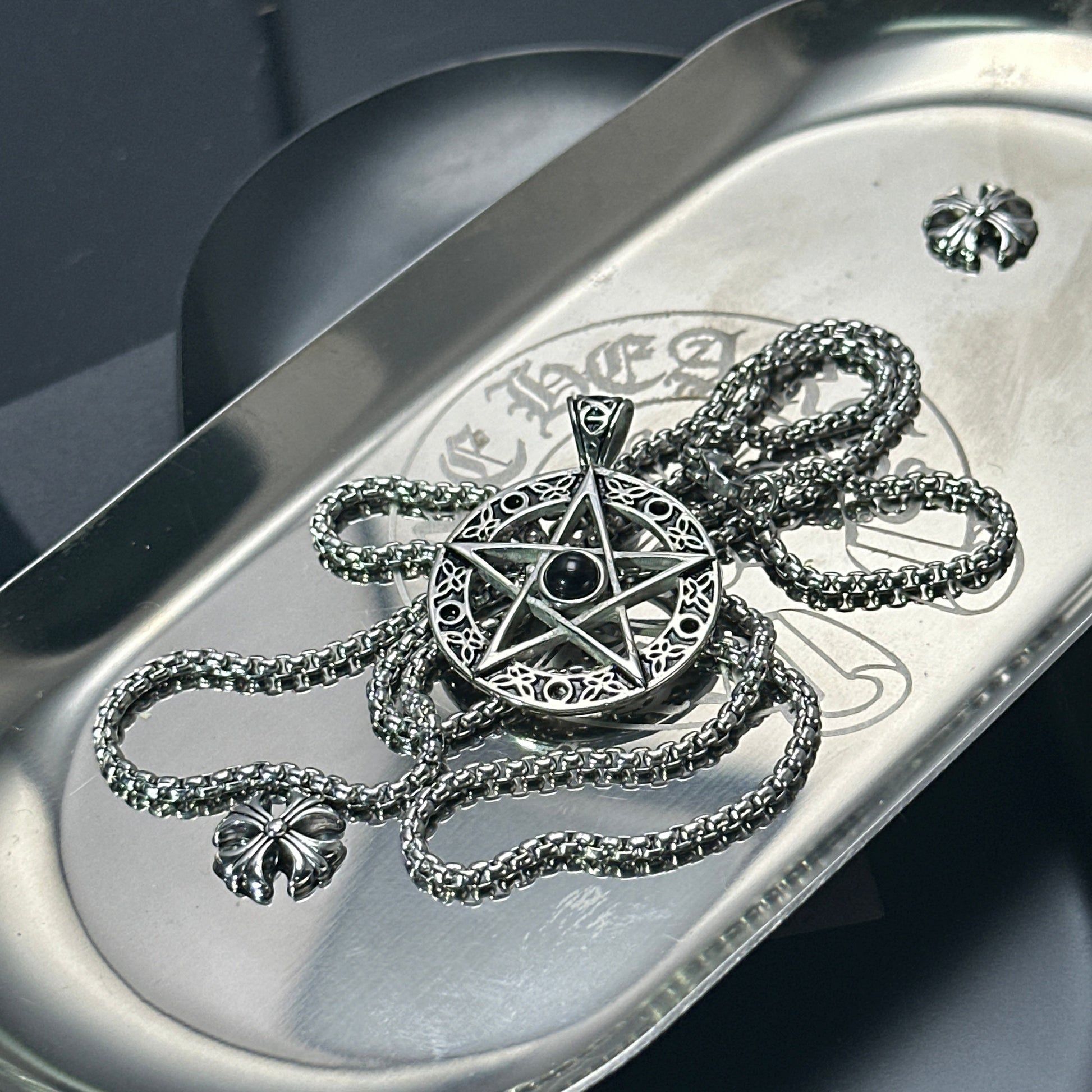Fashion European-Style Black Gem Star Pendant Necklace | 65cm Chain(GS-20250912-6)