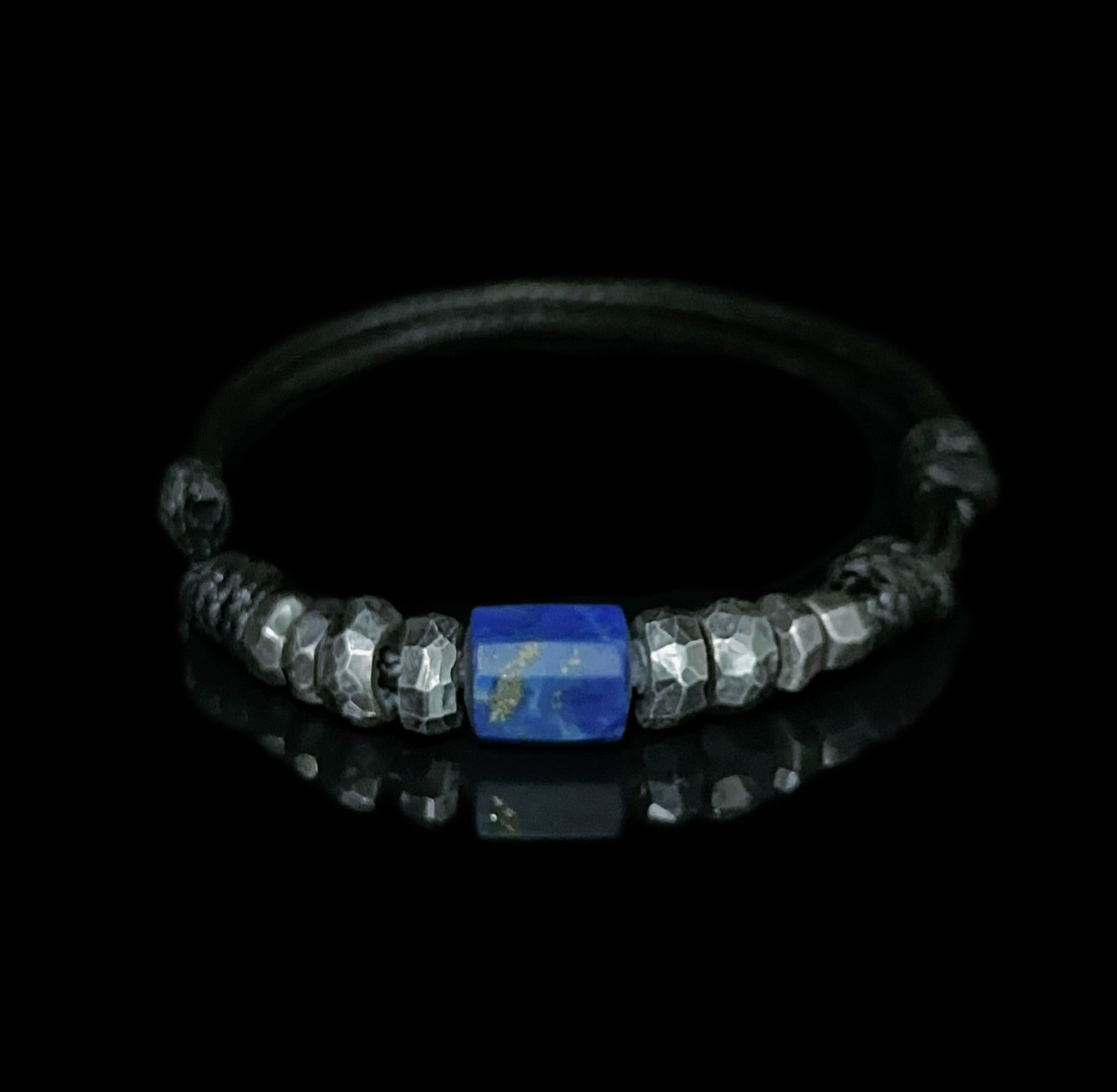 Lapis Awakening: Hammered Sterling Silver Wrap Bracelet(YS-20251111-5)