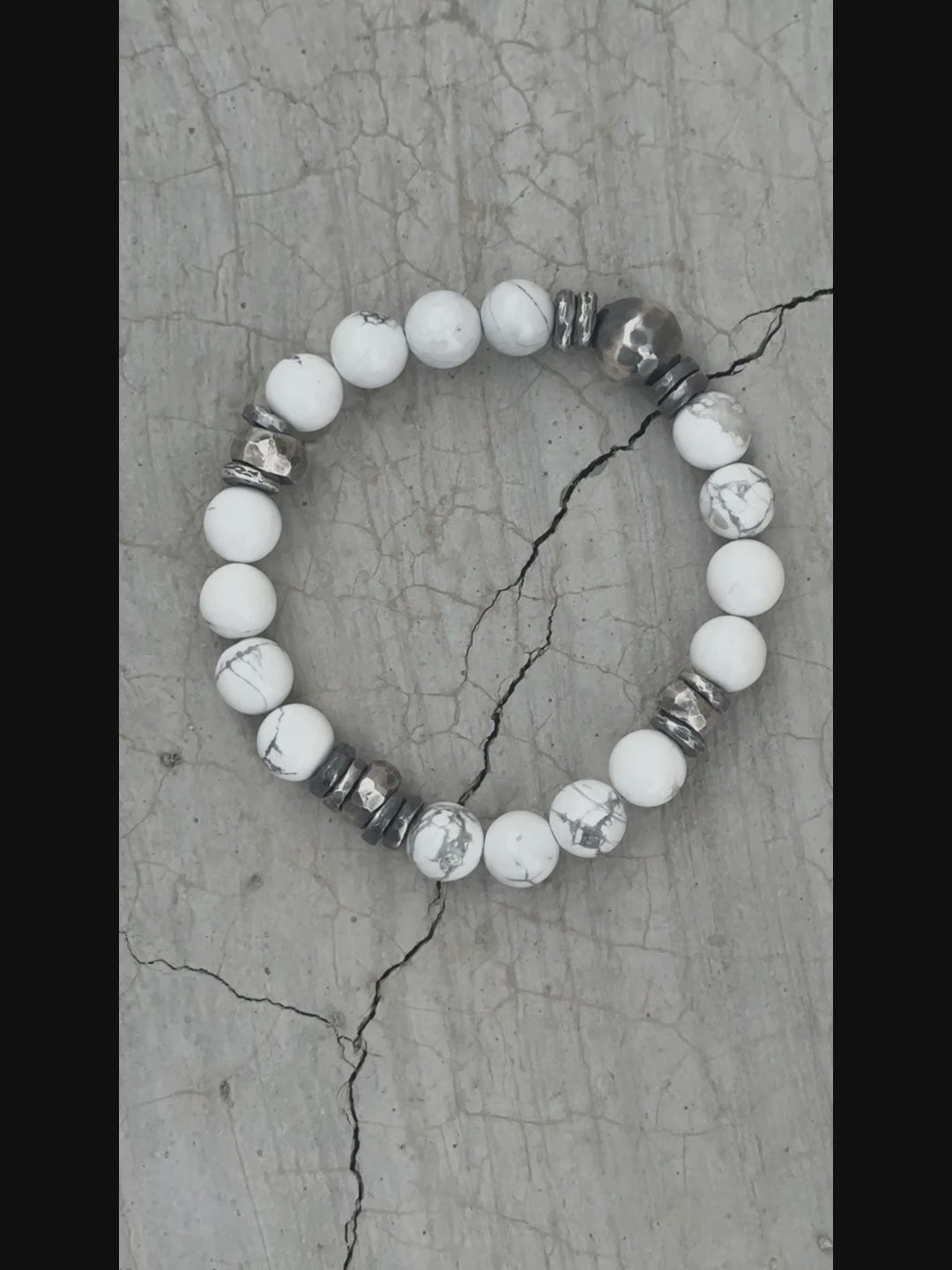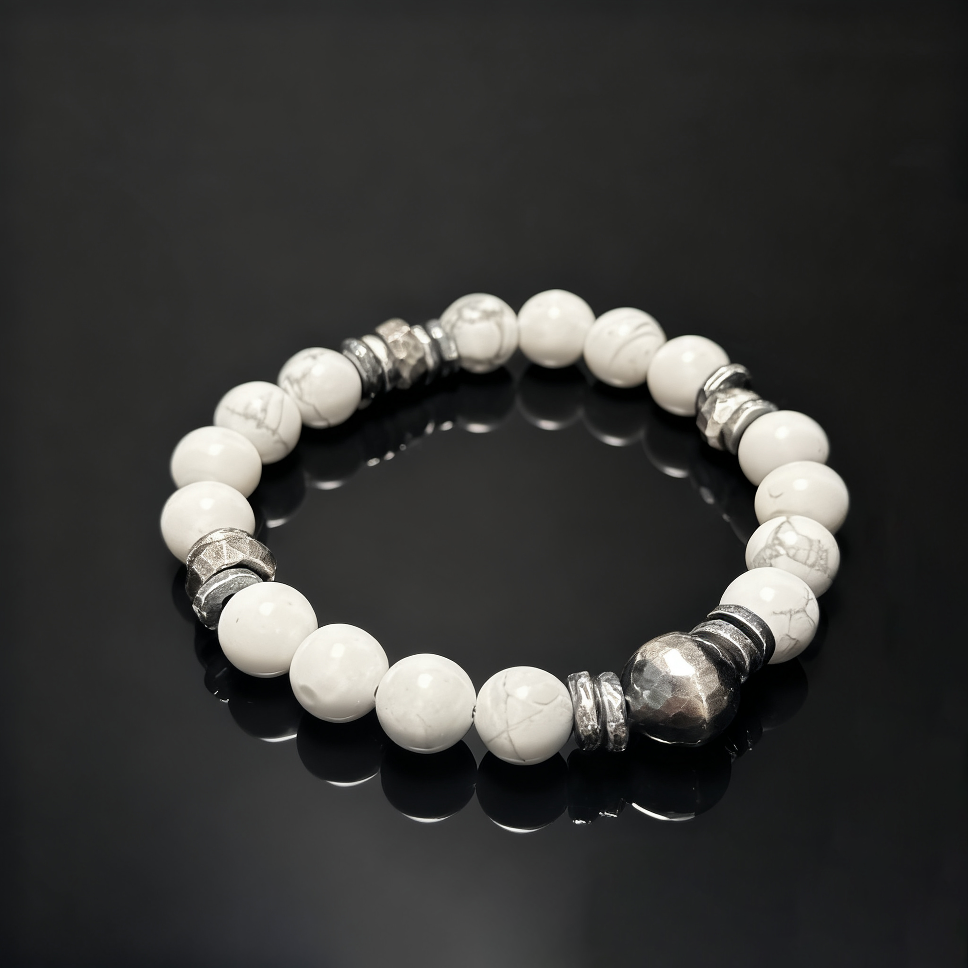 Crafted with natural White Turquoise and accented with 925 sterling silver, this bracelet offers a clean, soft, and calming aesthetic. Each bead features unique natural patterns, giving it a refined and airy look. Paired with bright sterling silver, it creates a fresh and elegant balance.