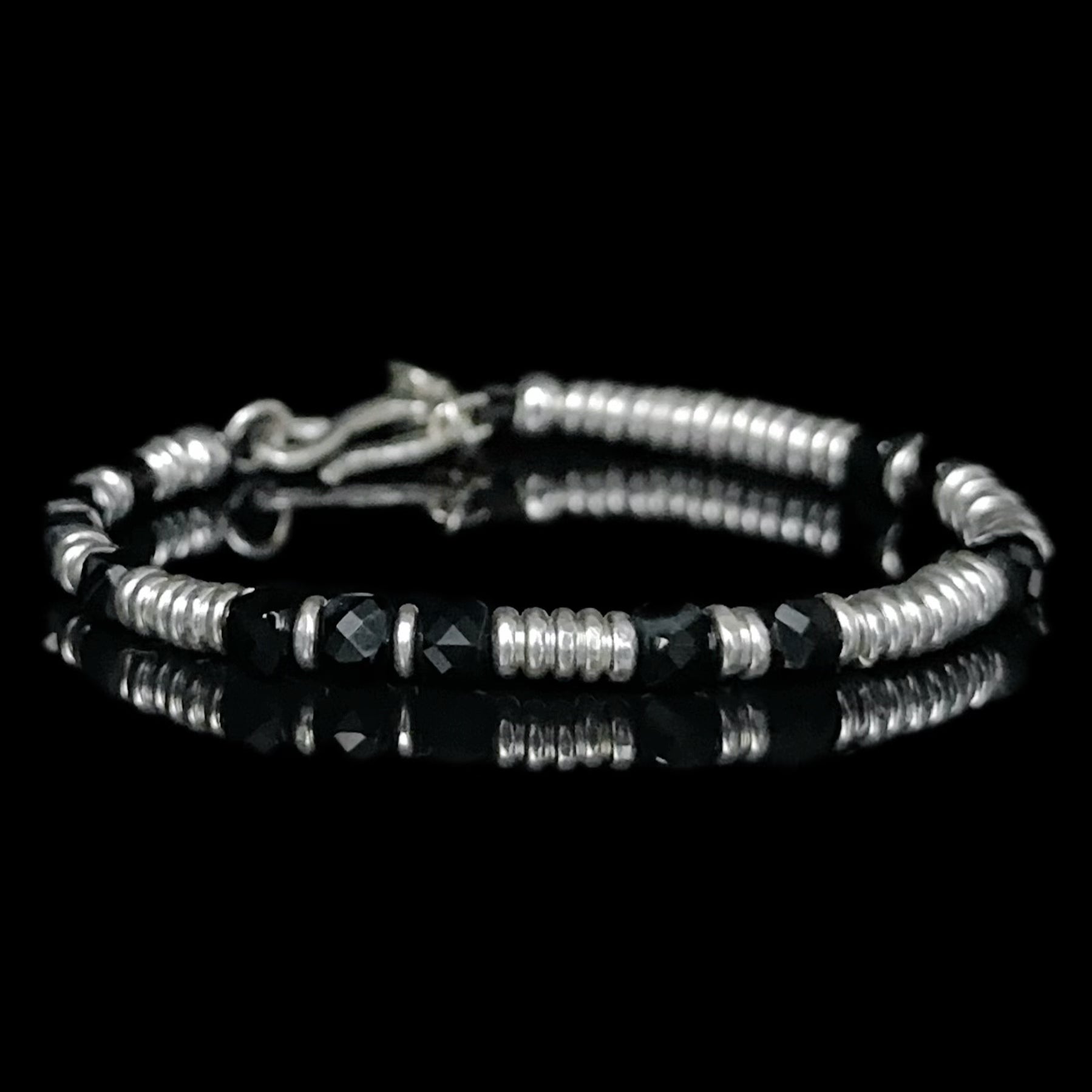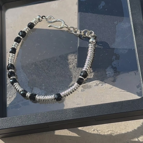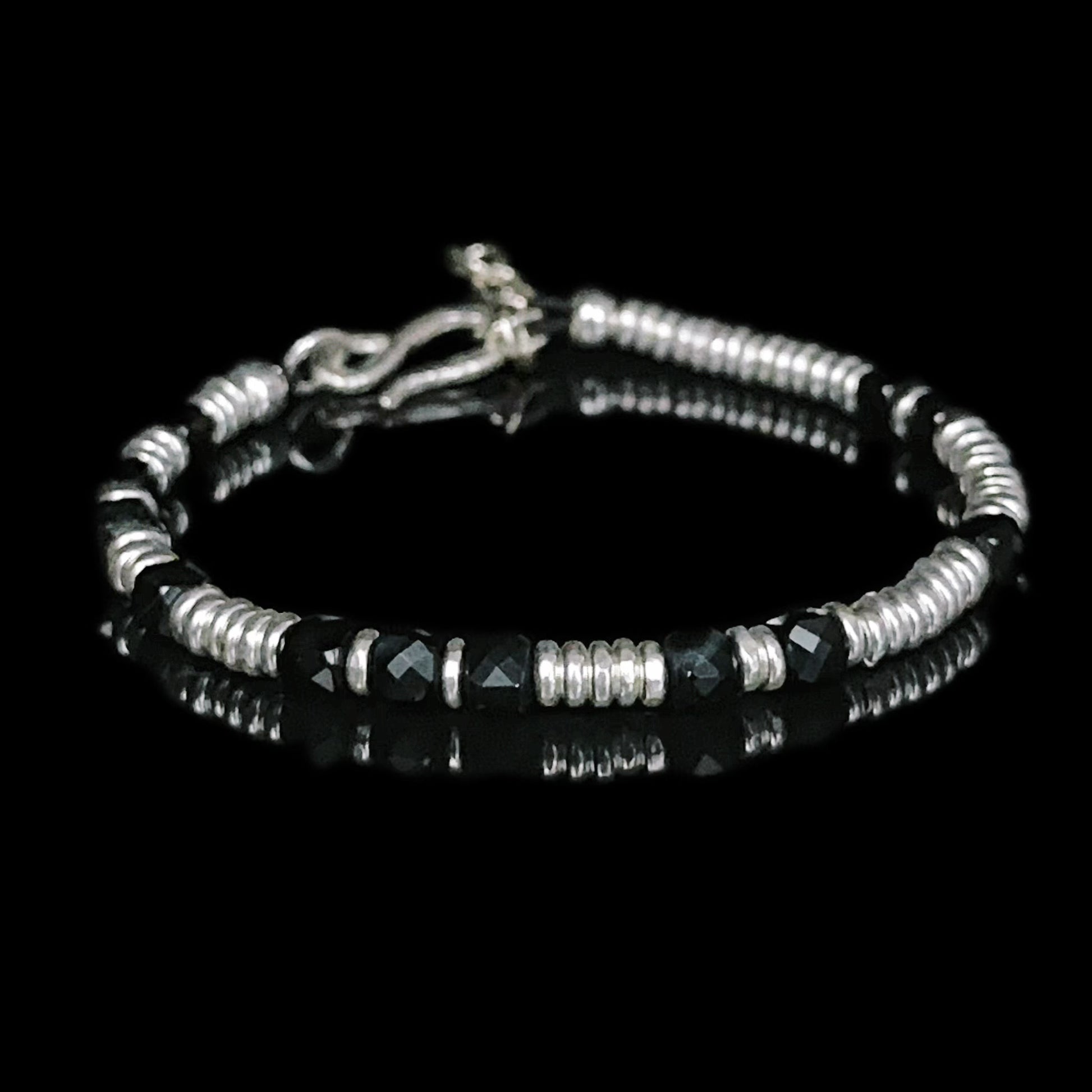 Onyx Shield: Sterling Silver Ringed Bracelet(YS-20251111-9)
