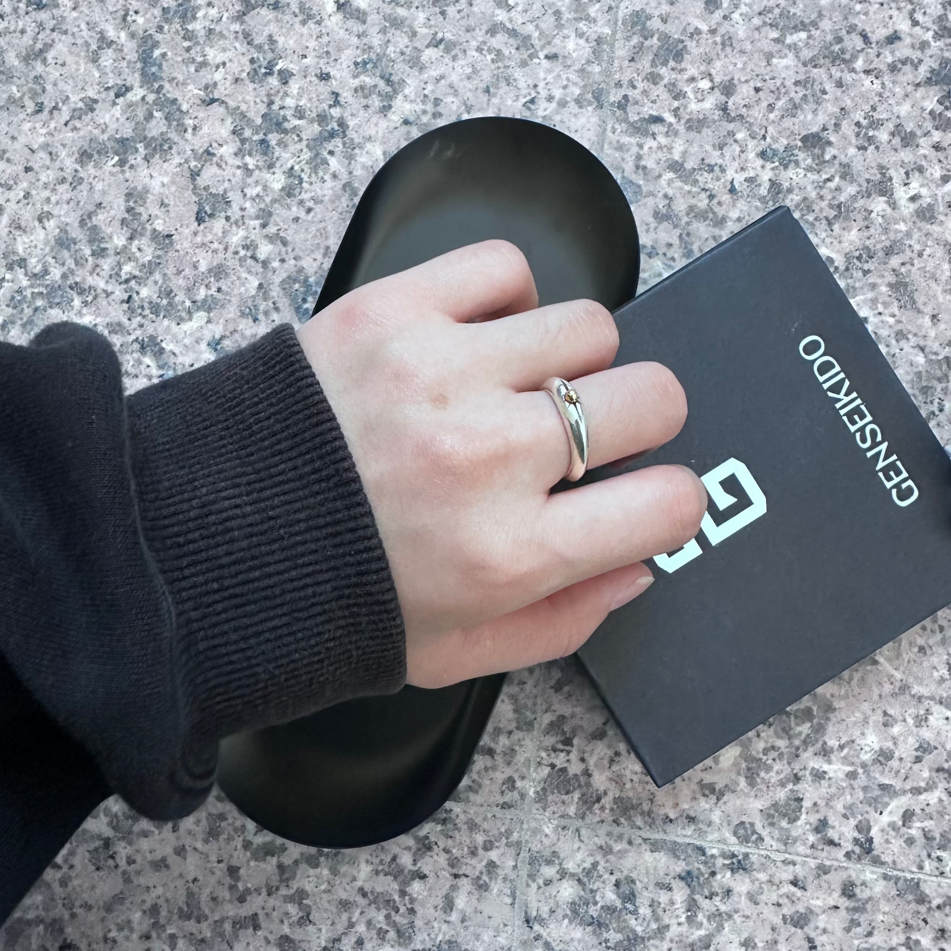 This ring is decorated with silver body and gold beads, and the surface cutting process refracts the cold luster, which is as eye-catching as the stars in the dark night on the black background. The minimalist design hides the ingenious details. The coldness of silver and the warmth of gold collide, which is an eye-catching weapon for niche control to show their taste.