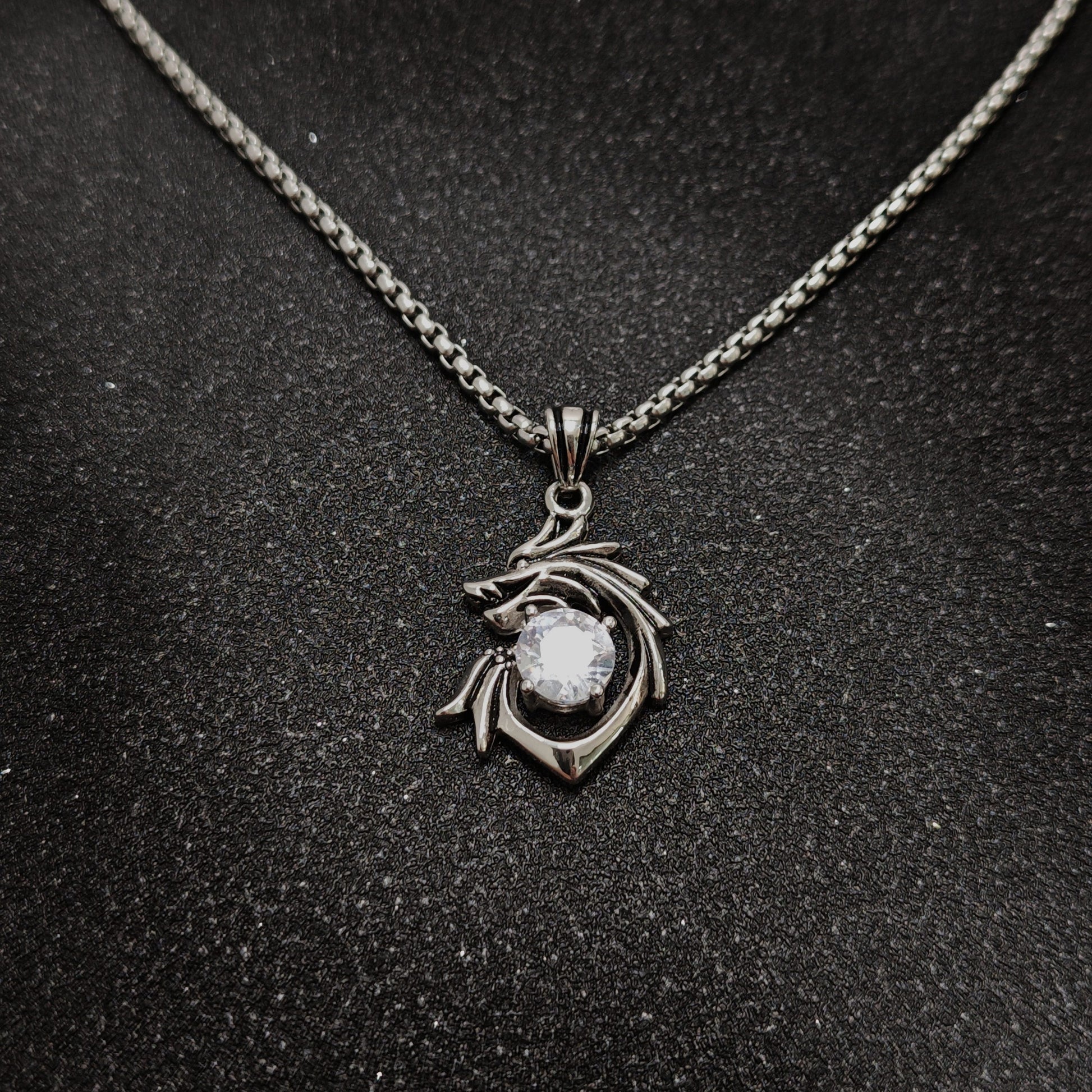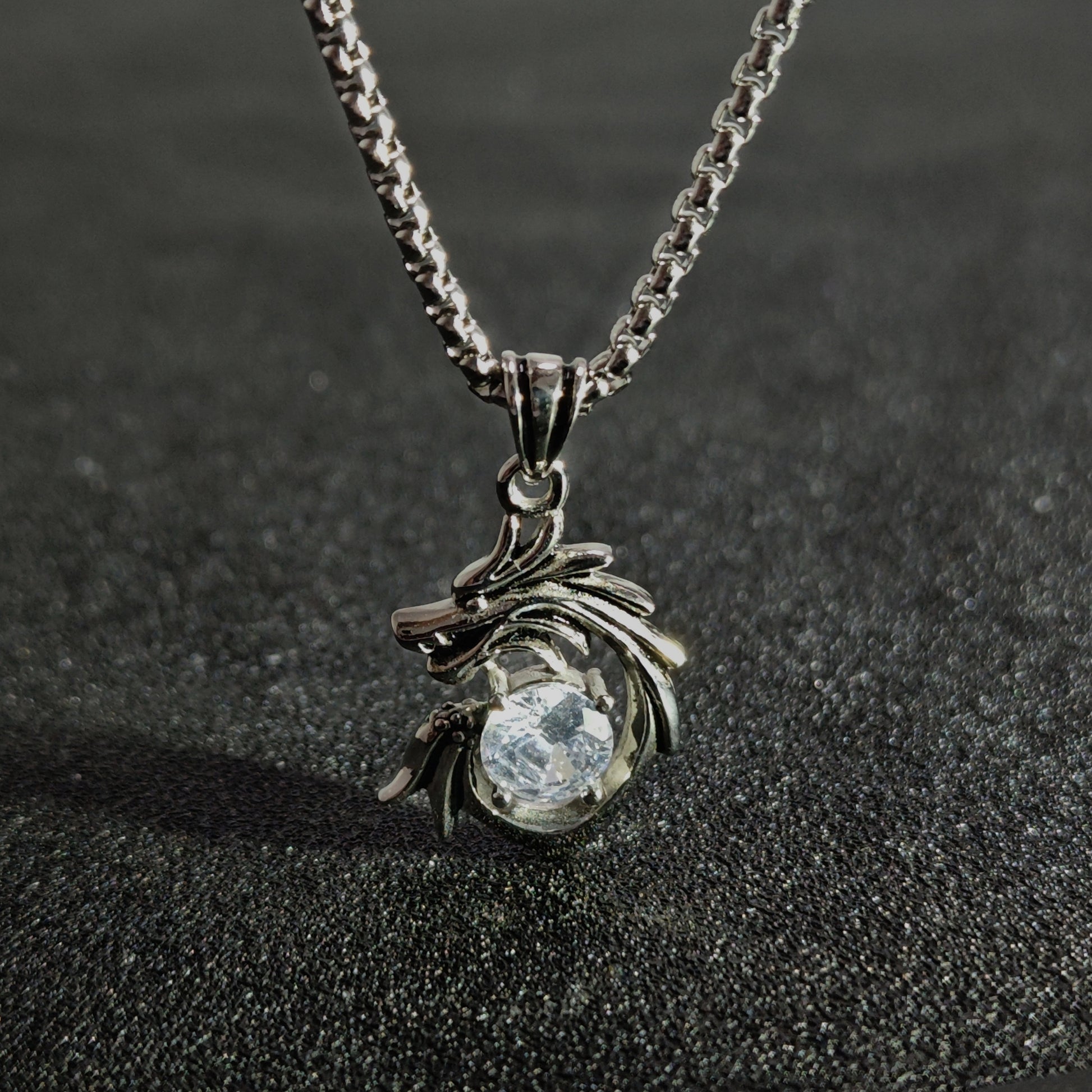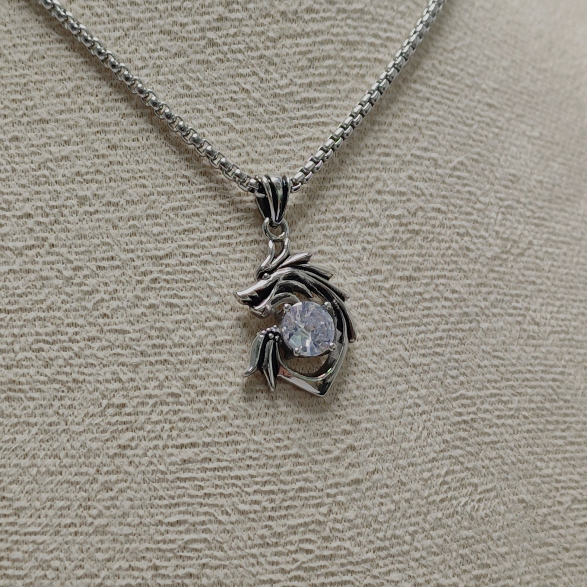 Street Style 316 Stainless Steel Dragon Pendant with Crystal Accents | 65cm Chain(GS-20250912-10)