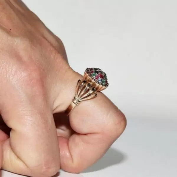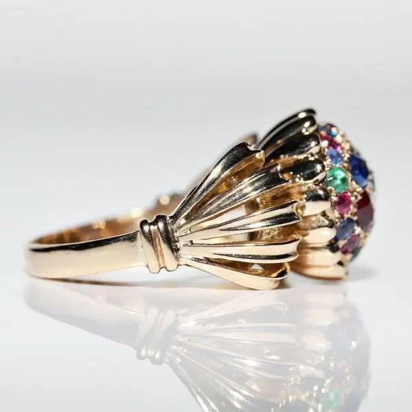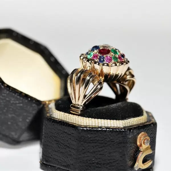 Vintage 3.3ctw Round Cut Ruby Sapphire Emerald Ring