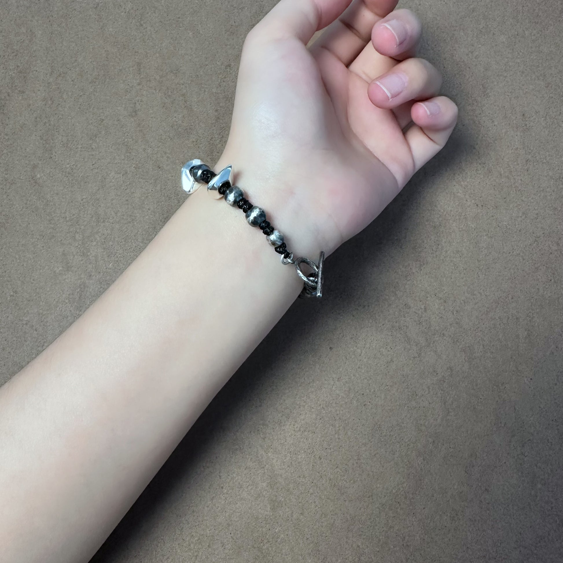 This kind of retro silver bracelet is often given a symbol of power and guard. Silver also has the meaning of warding off evil and blessing in traditional cognition. Its tough design can convey the aura of confidence. Wearing it can enhance the courage of personality expression from the psychological level and inject the energy of retro trend into the wear.